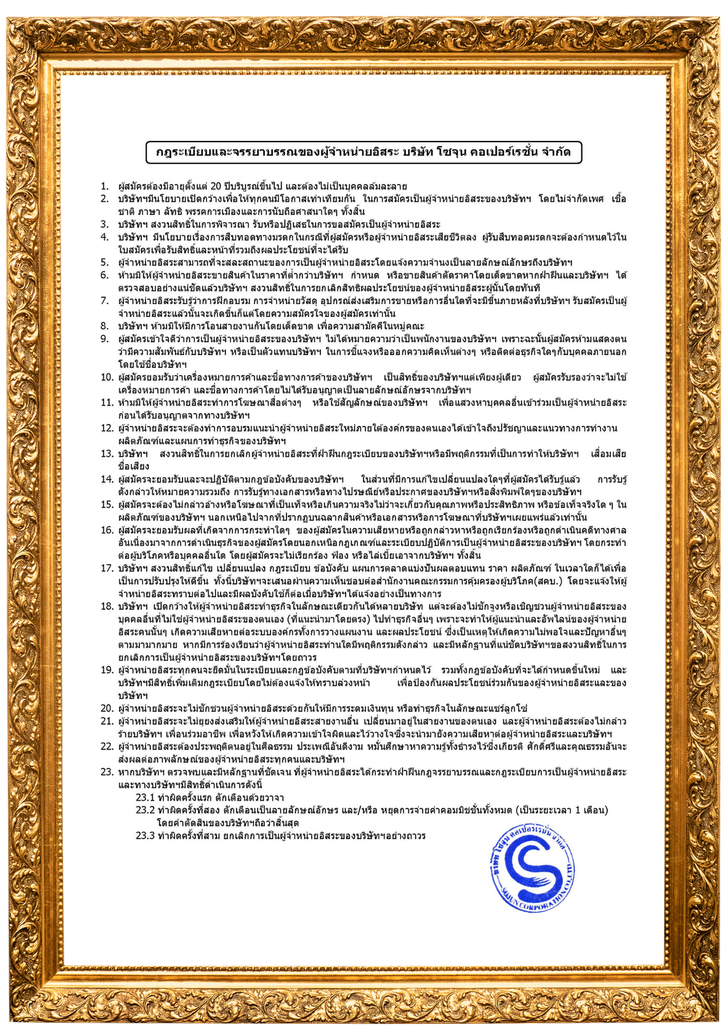 บริษัทฯ สงวนสิทธิ์ในการพิจารณา รับหรือปฏิเสธในการขอสมัครเป็นผู้จำหน่ายอิสระ