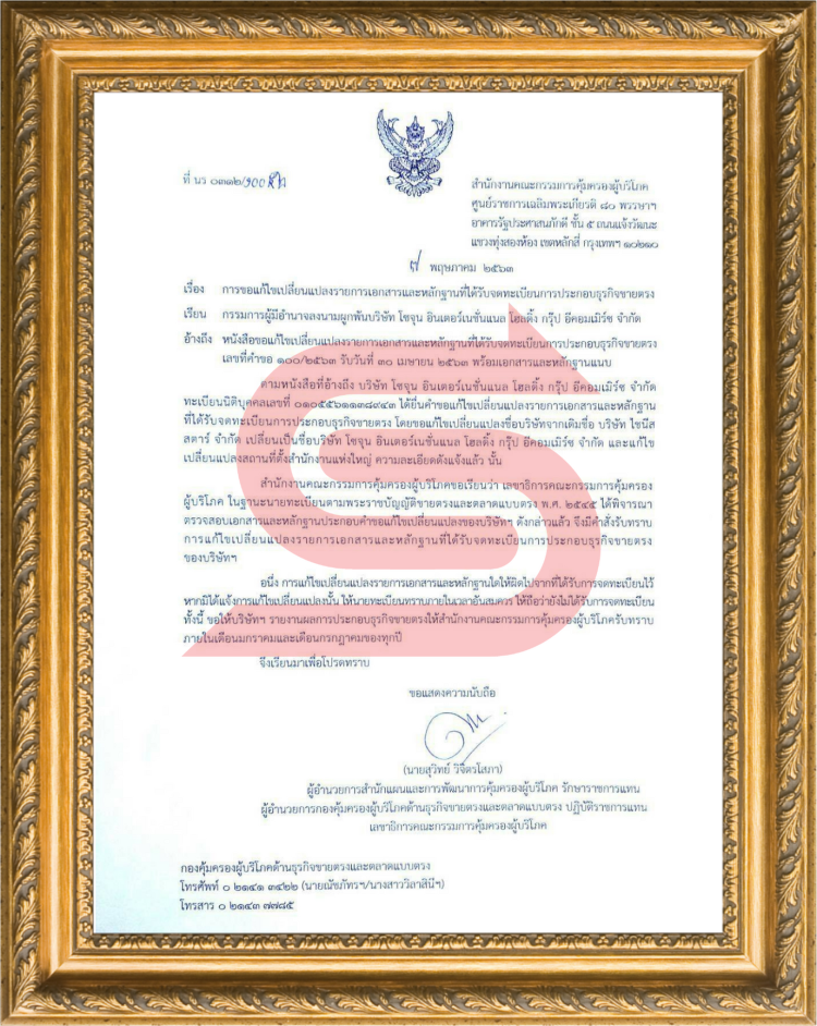 ผู้สมัครยอมรับว่าเครื่องหมายการค้าและชื่อทางการค้าของบริษัทฯ เป็นสิทธิ์ของบริษัทฯแต่เพียงผู้เดียว ผู้สมัครรับรองว่าจะไม่ใช้ เครื่องหมายการค้า และชื่อทางการค้าโดยไม่ได้รับอนุญาตเป็นลายลักษณ์อักษรจากบริษัทฯ